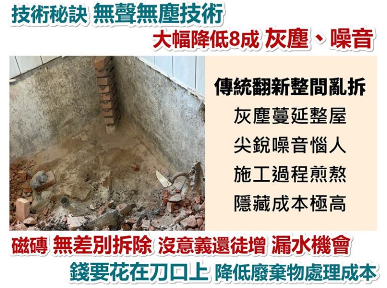 - 縮短了工程時間大幅減少噪音,與預算,改造時間短,無灰塵與噪音大勝。