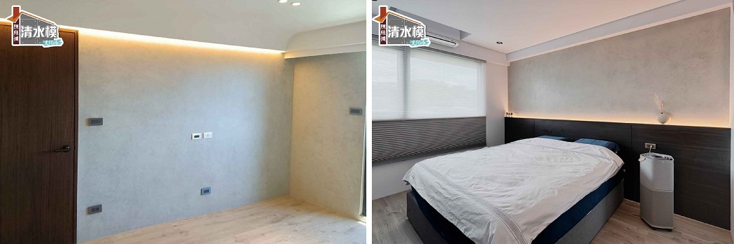 後製清水模適合預算有限或施工時間有限的空間,也適用於局部改造或修飾。施作方式首先將牆面處理平整,再施作專用膠泥,最後進行表面處理。