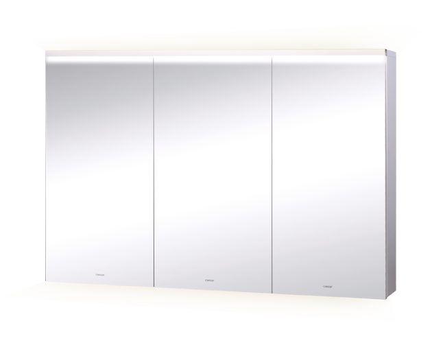 品名 : LED三門鏡櫃EM01120A 尺寸 : 1200 x 150 x 800 mm 櫃體 : 防潮夾板 開櫃方向 : 中間向右開,左右雙門對開 鏡燈 : 上下LED 4000K AC電源 : 110V 備註 : 附六片層板